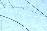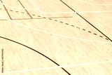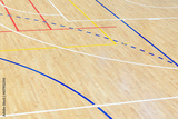 Wooden floor basketball, badminton, futsal, handball, volleyball, football, soccer court. Wooden floor of sports hall with marking lines on wooden floor indoor, gym court