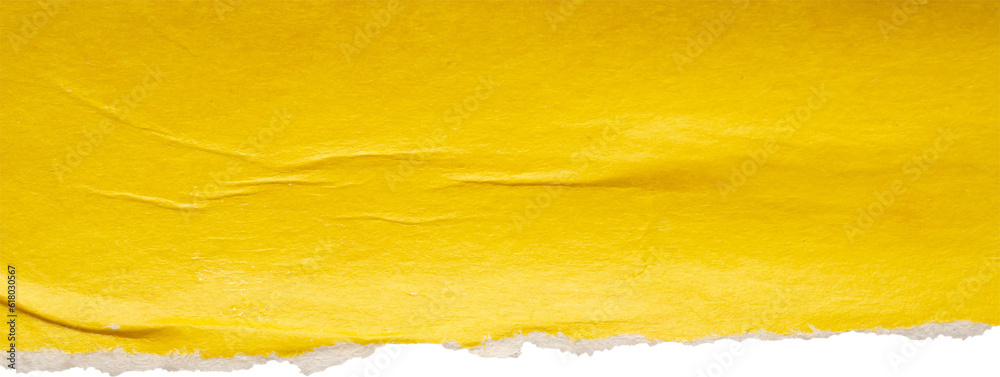 Yellow ripped paper torn edges strips isolated on white background