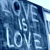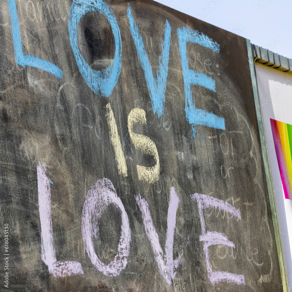 Phrase Love is love written on chalkboard