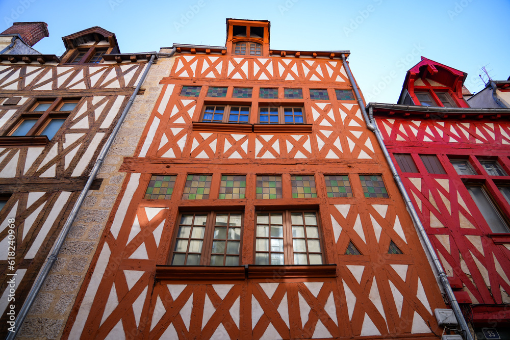 Half-timbered houses on the Rue de l'Empereur ("Emperor's Street") in the old city center of Orléans in the French department of Loiret, Centre Val de Loire, France