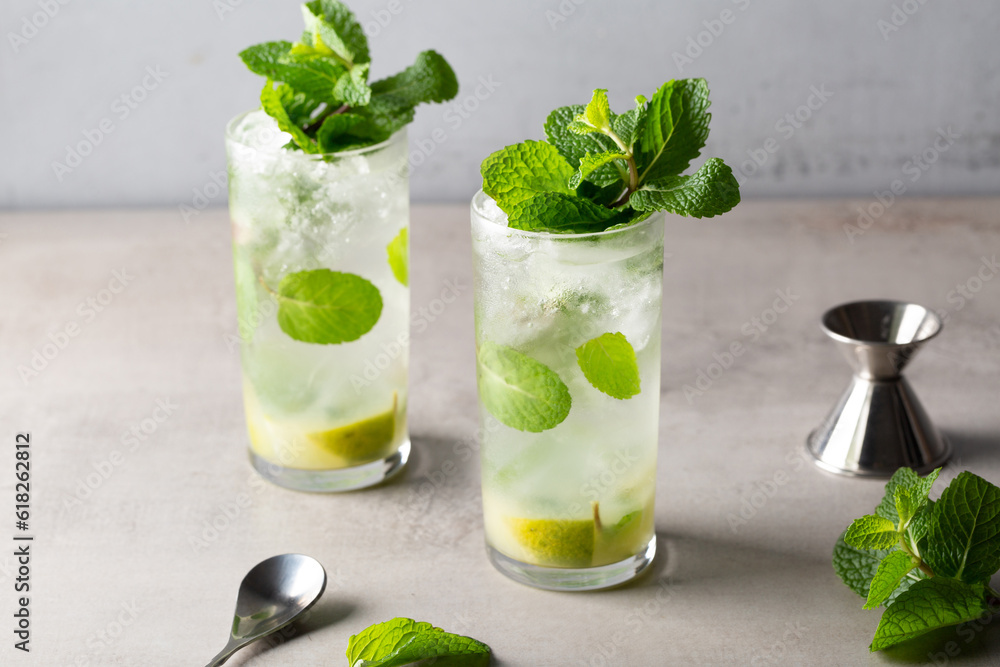Homemade Mojito Cocktail refreshment rum, lime juice, mint leaves and soda water