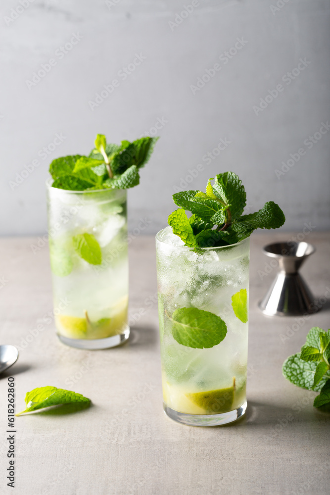 Homemade Mojito Cocktail refreshment rum, lime juice, mint leaves and soda water