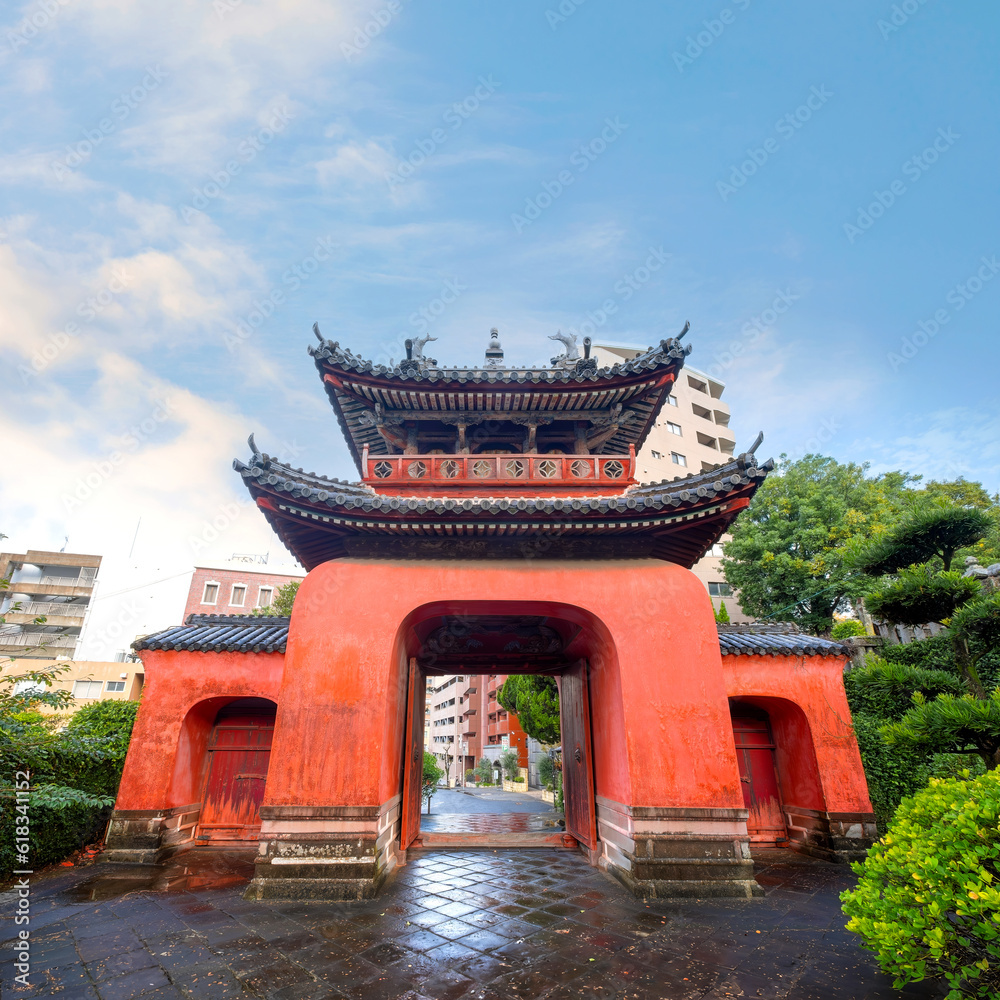 Nagasaki, Japan - Nov 29 2022: Sofukuji temple built in 1629 for Nagasaki's Chinese residents, the temple is constructed in a Chinese architectural style and different from other temples in Japan.