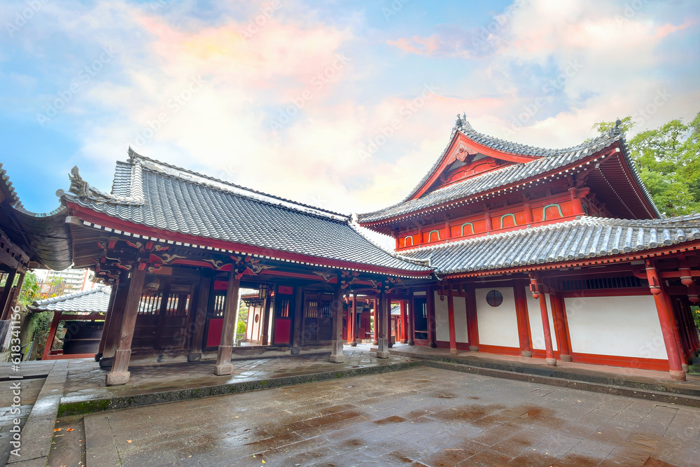 Nagasaki, Japan - Nov 29 2022: Sofukuji temple built in 1629 for Nagasaki's Chinese residents, the temple is constructed in a Chinese architectural style and different from other temples in Japan.