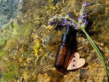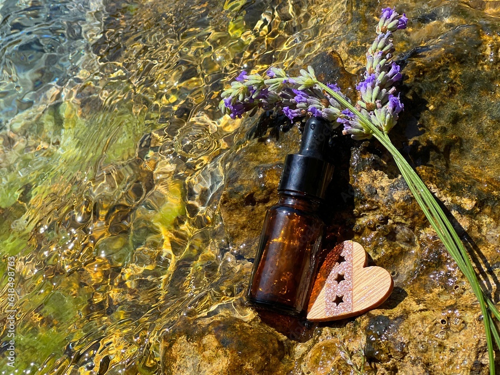 Cosmetic bottle vial serum essence with sea mineral collagen hylauron peptides lavender oil beauty skin care.