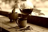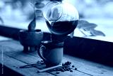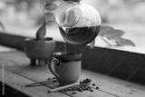 Holding a glass carafe, pour the black drip coffee into the cup and serve it in the morning. Coffee has a special aroma and taste that is unique to each type of coffee.