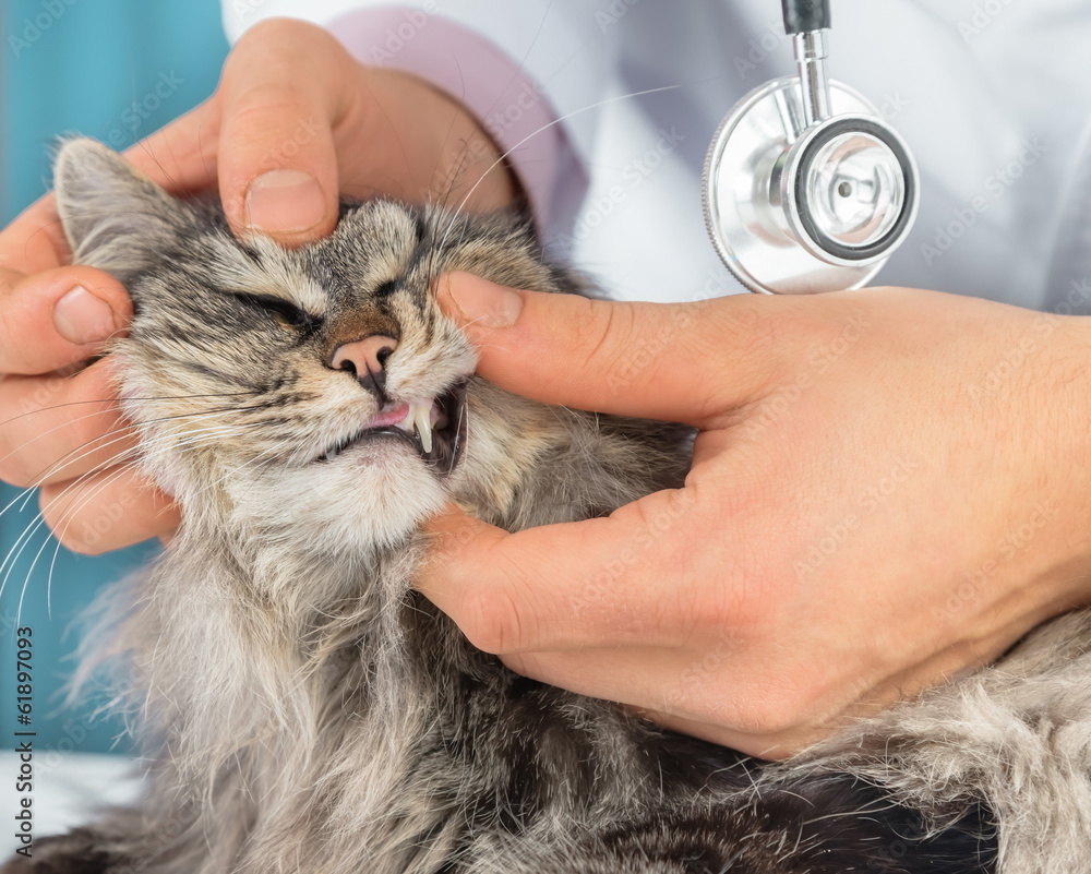 Vet checks the teeth of a cat