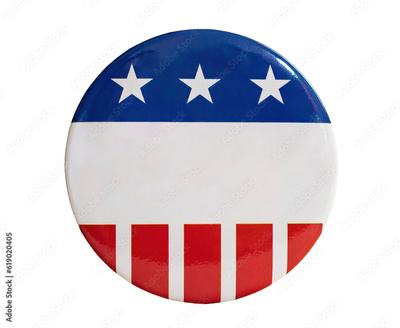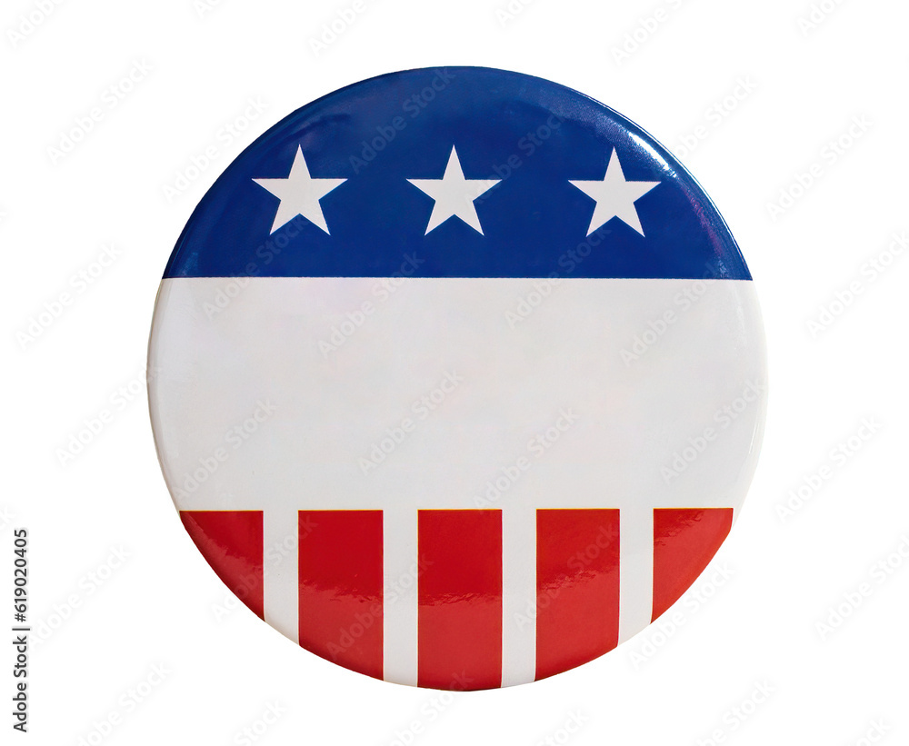 Pin with USA flag USA campaign votes, isolated on blank background.