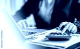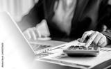 Close up view of Businesswomen or Accountants using calculator and a laptop computer to analyze business report graphs and finance charts at the workplace, financial and investment concept.