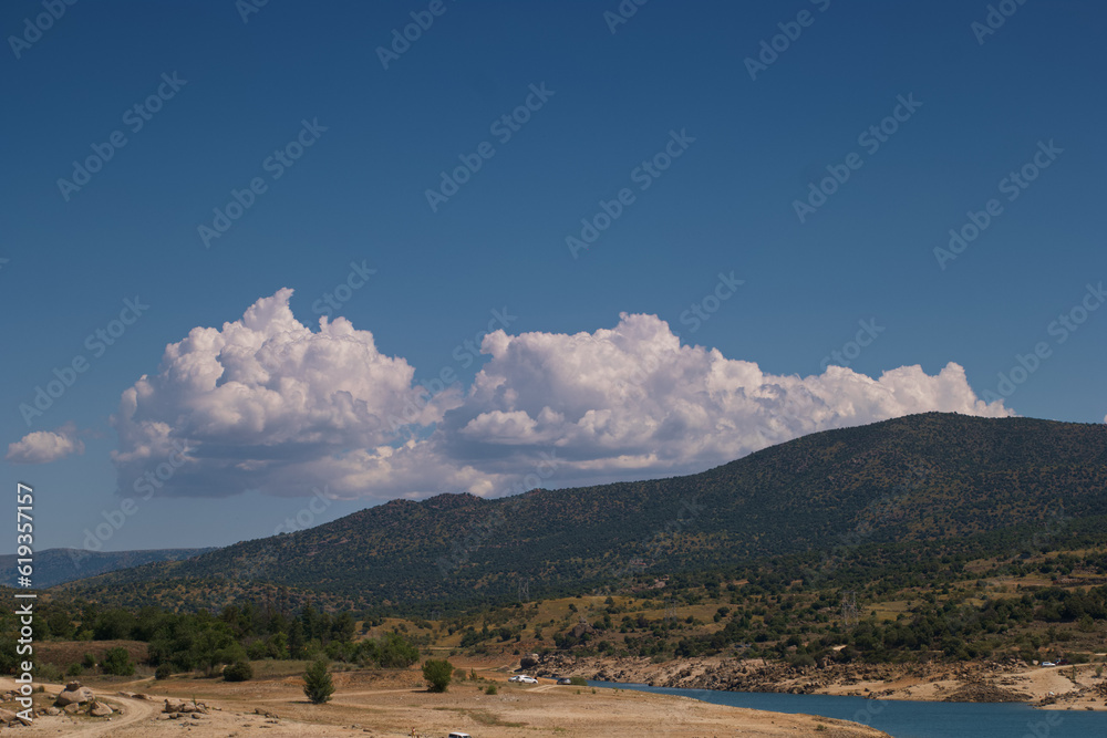 góry, krajobraz, widok, natura, drzewa, hiszpania, lato, natura, na zewnątrz, skały, woda, rzeka,