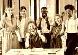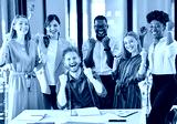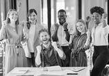 business team businesswoman success meeting office teamwork happy portrait businessman together education cheerful celebration colleague celebrating group successful startup
