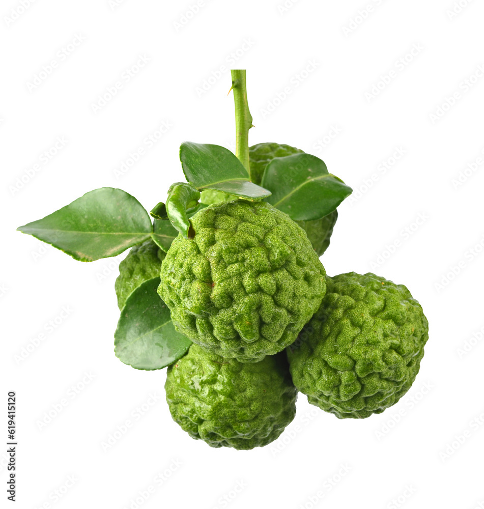 bergamot or kaffir lime fruit with leaf isolated on white background.