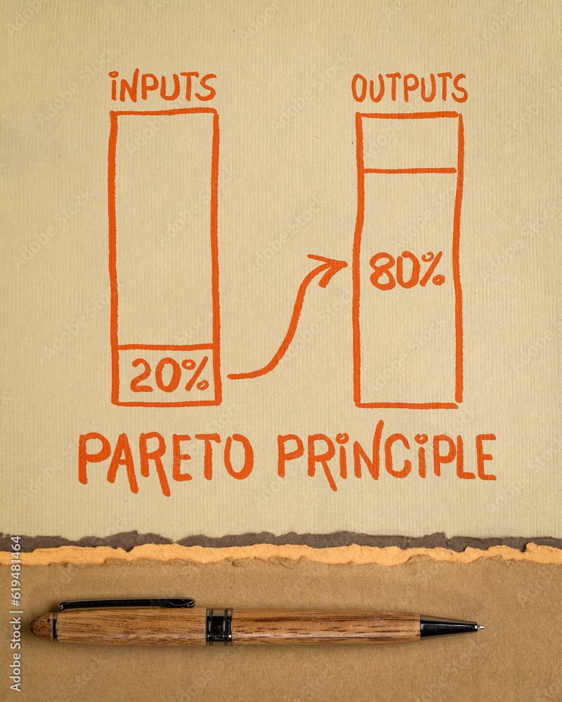Pareto 80-20 principle - handwriting and sketch on a art paper, business, productivity and priorities concept