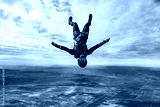Woman skydiver in freefall alone over desert landscape