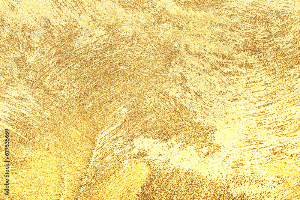 Texture of golden decorative plaster or concrete. Abstract gold grunge background.