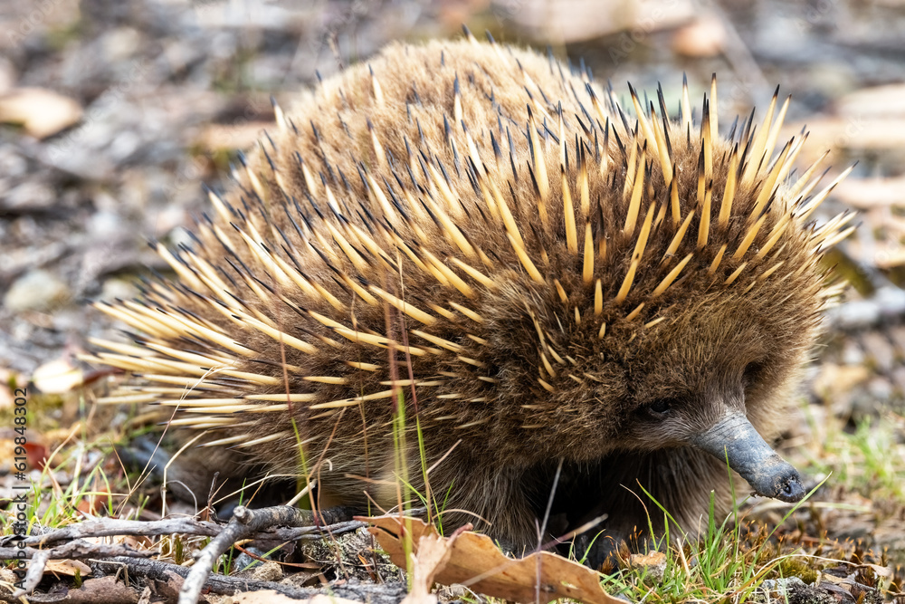 A short beaked echidna, Tachyglossus aculeatu, also known as the spiny anteater. This is an egg laying mammal or monotreme.