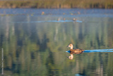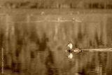 A solo Duck in calm water with a shallow depth of field