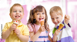happy children or kids group with ice cream