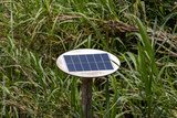 Solar panel on a pole in the middle of tall tropical grass, Thailand