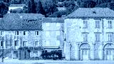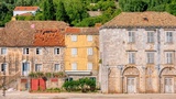 Traditional stone houses along the waterfront street in the picturesque village of Sipanska Luka on Sipan Island on the Dalmatian Coast in Croatia.