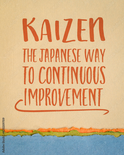 kaizen - Japanese concept of continuous improvement, inspirational note on art paper, business and personal development
