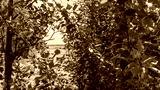 Green leaves in front of Cospuden Lake in Leipzig in summer