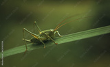 Macrophotography of a green grasshopper sitting in the grass. The invasion of locusts on farmers' fields.A jumping insect.