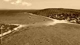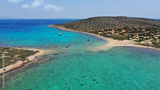 Aerial drone photo of azure paradise blue lagoon of Panteronisi a small islet complex between Paros and Antiparos islands, Cyclades, Greece