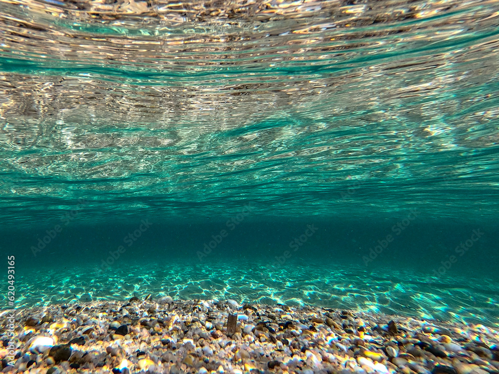 underwater world wide angle view, mediterranean sea, Villasimius, Sardinia Underwater photo in crystal clear Mediterranean sea water for background
