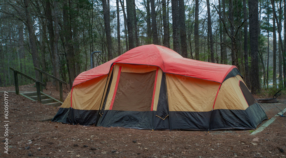 Tent campsite in early spring