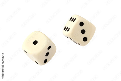 Two white dices isolated on white background with clipping path