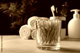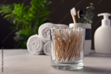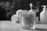 Bamboo cotton buds or cotton swab in glass for beauty treatment
