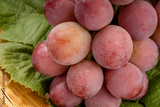 Sweet Red Grape fruit in wooden basket over blur greenery background, Queen Nina Grape over green natural Blur background.