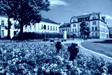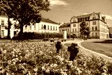 oelsnitz, deutschland - idylle mit blumen in der altstadt