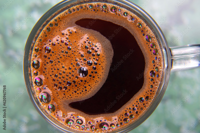freshly brewed coffee in a Cup close-up