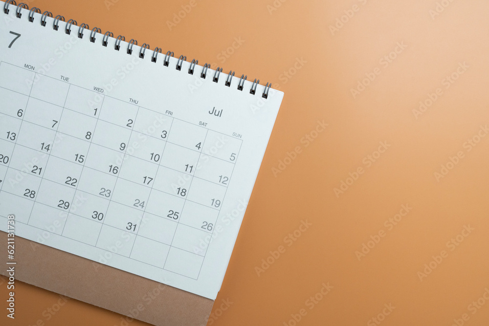 close up of calendar on the brown table background, planning for business meeting or travel planning concept