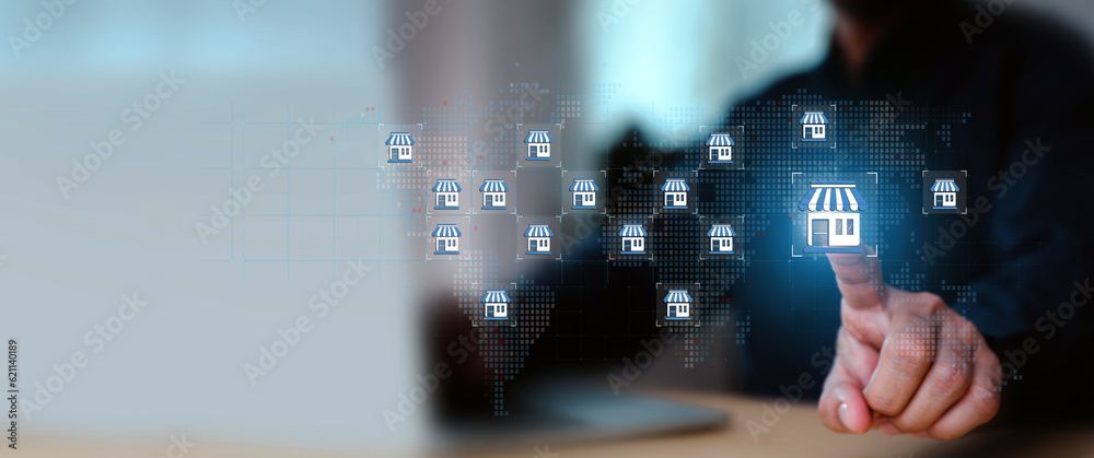 Franchise business e-commerce online e-marketplace or digital marketing branch expansion for growth or use technology to analyze product consumer data website management plan for sale service concept.