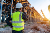A civil architect engineer inspecting and working outdoors road construction site. Supervise new road construction. Civil Engineer.