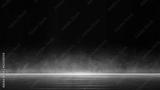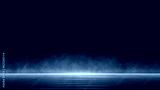 Dark stage shows, blue, and purple background, an empty dark scene, laser beams, neon, spotlights reflection on the asphalt floor, studio room with smoke floating up for display products.