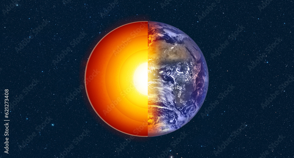 The structure of the interior of the earth's crust and space - The structure of the earth's crust. Earth cross section in space view. "Elements of this image furnished by NASA"