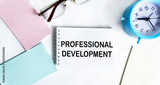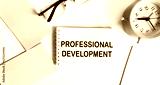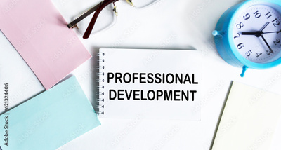 Notepad with inscription Professional development on desktop