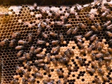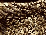 Working bees on honey cells.