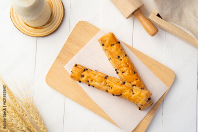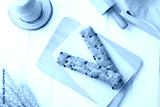 Chocolate Chip Danish sticks,A thick, slightly crisp, yet still chewy Croissant dough stick loaded with chocolate chips.Top view