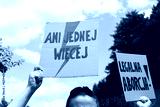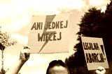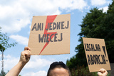 Placard signs supporting abortion rights in Poland. Women's Strike protest rally demonstration after death of young pregnant woman. Ani jednej więcej is Not one more. Legalna aborcja is Legal abortion