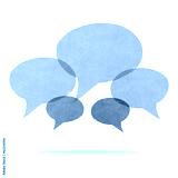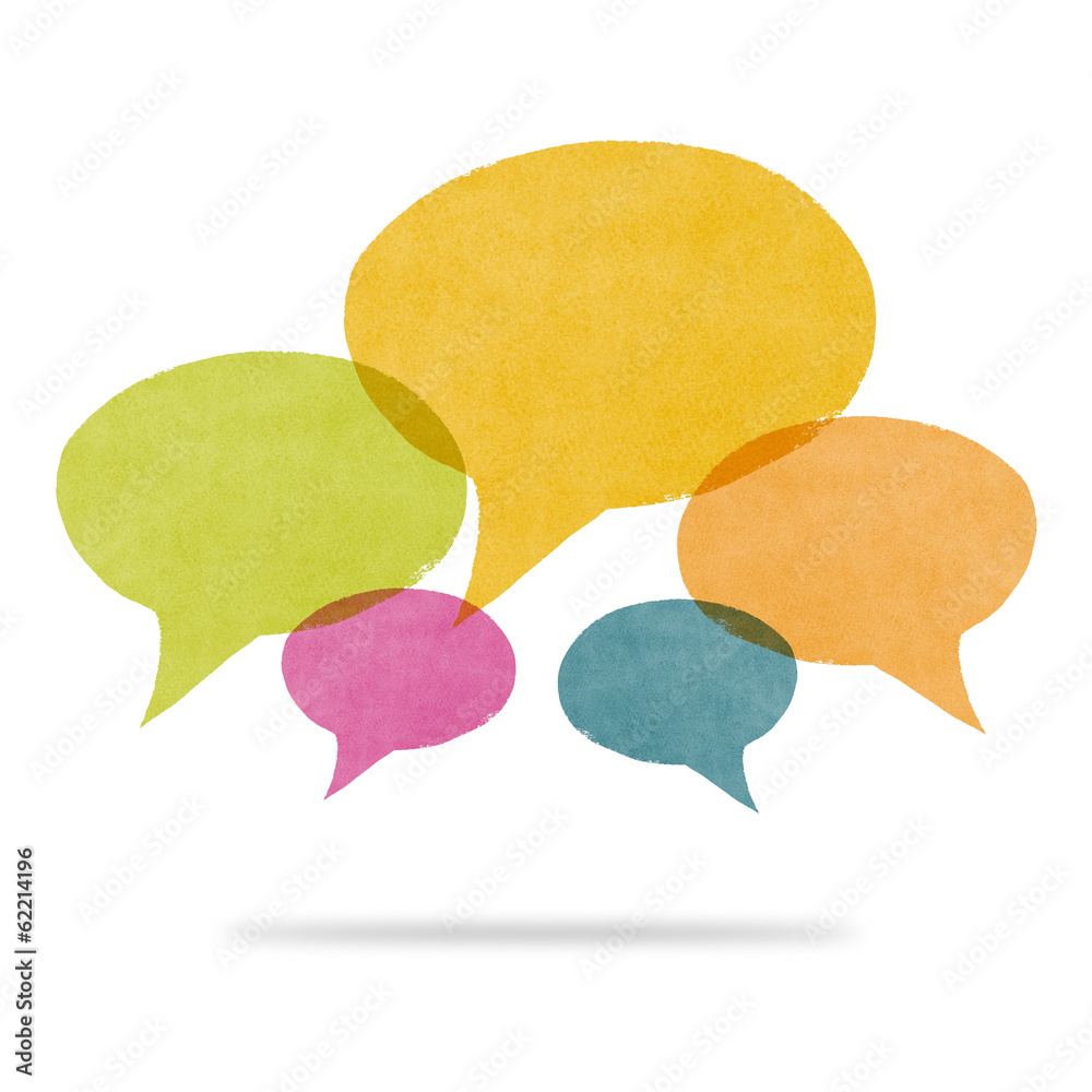 Watercolor Painted Yellow Blue and Pink Speech Bubble Conversati