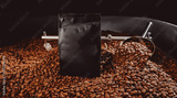 Mockup pouch premium black bag package for fresh roast coffee beans
