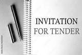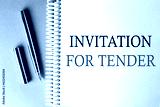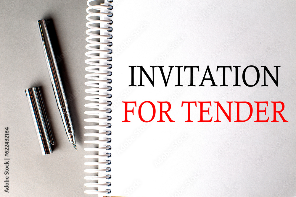 INVITATION FOR TENDER text on a notebook with pen on grey background