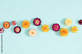 Flowers composition. Floral background pattern. Flat lay, top view of beautiful multi-colored dry flowers on pastel blue background