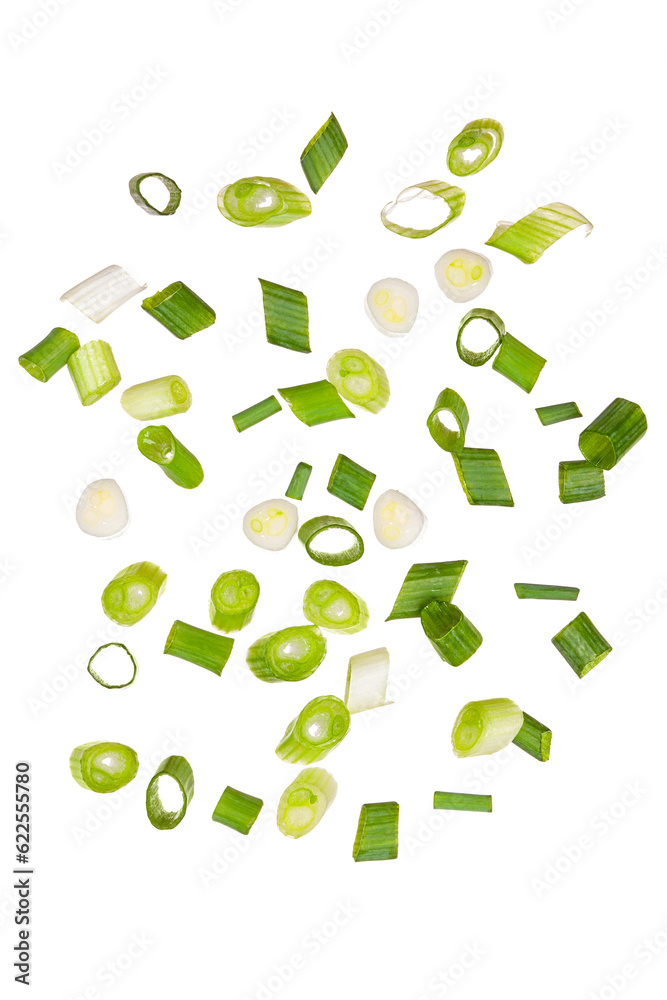 chopped green onion isolated on white background.