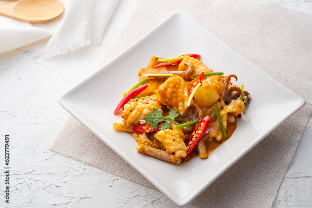 Stir-Fried Squid with Salted Egg Yolk (plaa meuk phat khai khem),Thai food